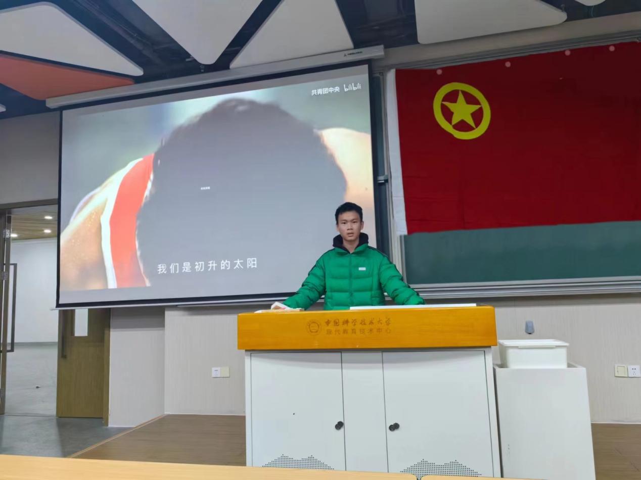 本次活动共分为六项议程:齐唱团歌、工作汇报、代表发言、团员先进性评价民主测评投票、班主任点评和重温入团誓词。会议中,按照之前公布的竞选人名单和自我陈述,团支部全体团员通过民主投票的方式推选出优秀等次团员并在会后进行投票结果公示。此次活动鼓励青年团员,要时刻牢记习近平总书记的嘱托,以新时代好青年应有的姿态开拓进取、率先垂范,奋进新征程、诠释新使命。