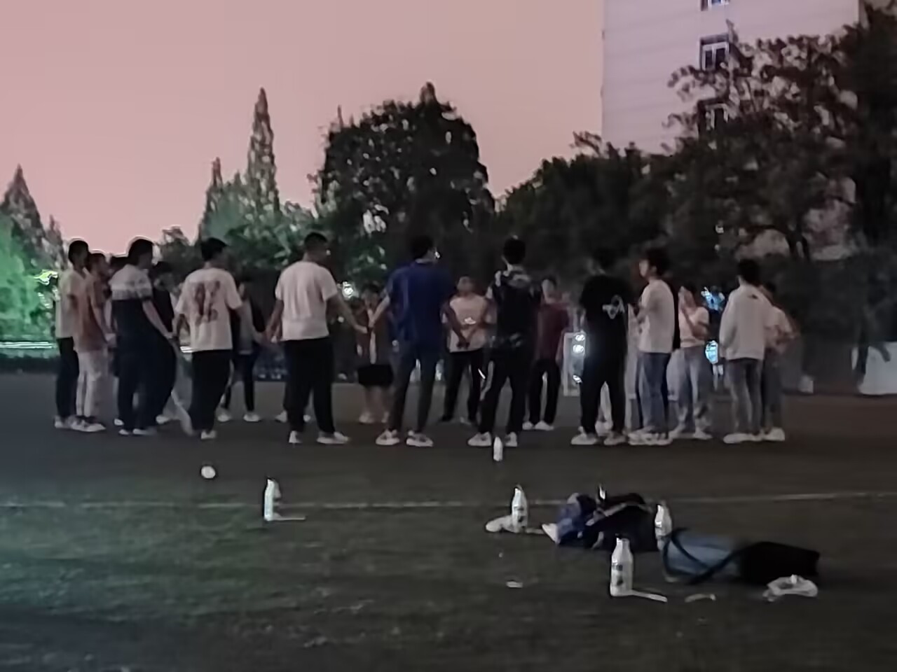 明月高悬,操场上同学们围坐一圈,负责人准备的小音箱里飘荡出悠扬的歌声。正式活动开始前,活动负责人为大家分发零食和饮料,尤其是象征圆圆满满的月饼。夜色很深,但同学们的笑脸依旧灿烂,大家的合照留下了宝贵的记忆。