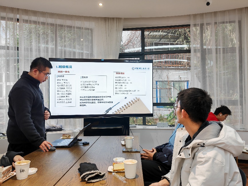 冯彦博同学从班级人数、人员分布、班委会和团支部的人员构成等角度对班级概况进行了基本介绍。他以相关截图为实例,展现了团学工作的卓著成就:入党积极分子、团员人数增加,团日活动、团日生活会多次举办,青年大学习全员完成……接下来,他介绍了本学期班级活动的开展情况。本学期班级二课活动以德、智、体、美、劳全面发展为宗旨,共开设活动37项。学习小组的成立不仅为班级二课活动增添了新形式,也为学习困难的同学提供了帮助。职业规划活动是班级活动的一大亮点,参与宣讲会和参观科大讯飞帮助同学们提前规划职业生涯,寻找努力方向。除此之外,他提到班级会每月开展至少一次与组织生活相关的活动,如生活交流会、家长寄语、乒乓球学习等,帮助同学们放松身心,学习技能。