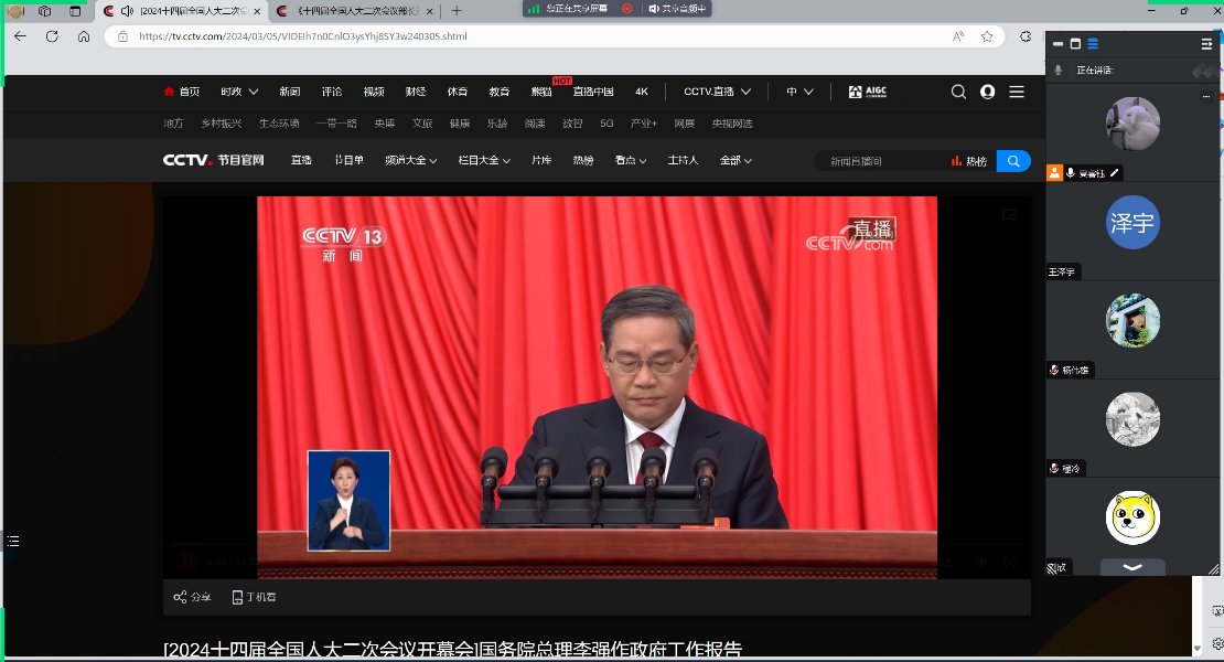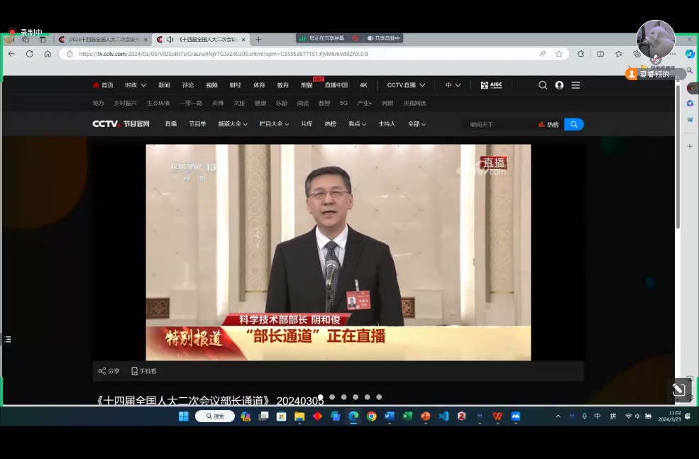 为使支部团员深入了解政府工作报告、学习两会精神,增强对科技创新驱动、人才培养体系的认知,信息科学技术KY.COM开元体育(中国)科技公司自动化系2022级硕士班团支部于2024年3月23日组织全体成员线上观看了第十四届全国人民代表大会(简称“十四届全国人大”)二次会议开幕式视频,共同学习了政府工作报告,并结合“部长通道”采访视频着重关注科技部在创新驱动高质量发展方面的举措,以及对青年人才的扶持政策和未来工作规划。