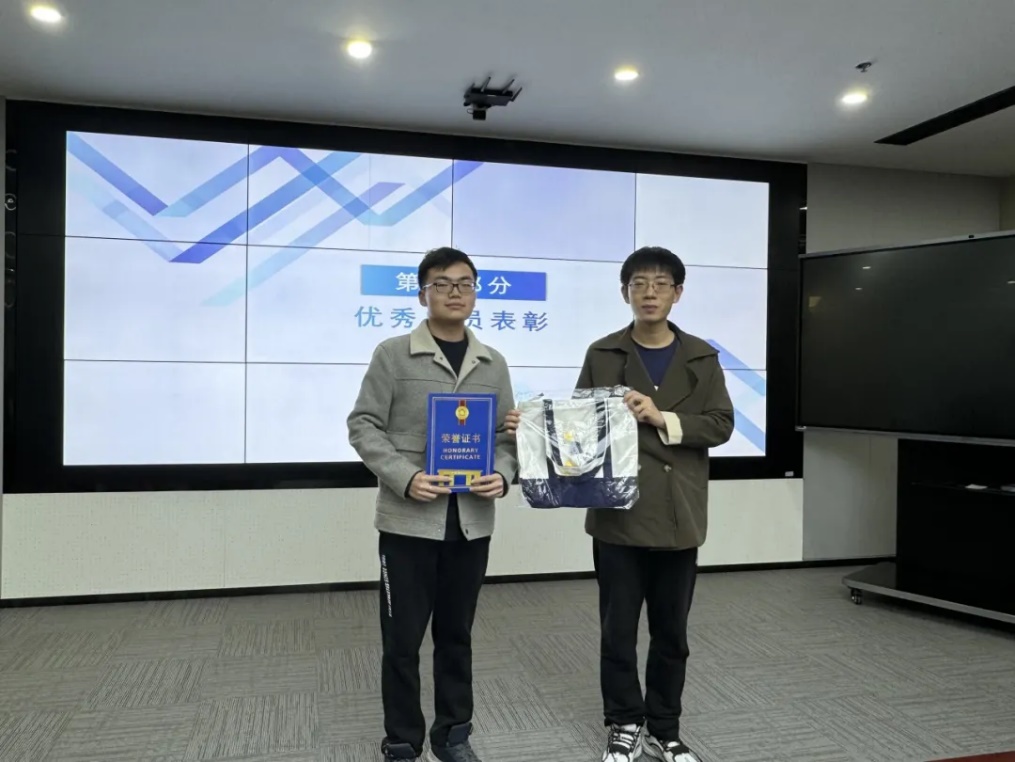 研究生会对“院系杯”高新园区篮球赛项目之星李欣羽和2023年秋季学期研会之星邰志伟进行了表彰,为他们颁发了奖状和奖品,感谢他们为研会做出的贡献,并鼓励其他研会成员以他们为榜样,积极参与研会工作。