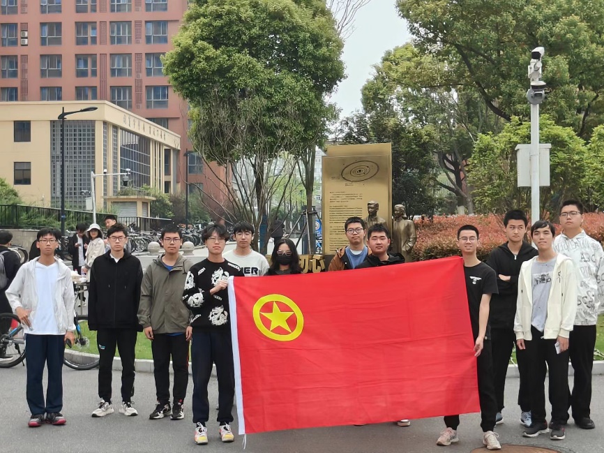 随后到达中区,同学们在这片最熟悉的区域中寻觅不曾注意的春色。他们来到著名的永怀初心雕像旁,一面高大的金属碑伫立于草坪上,其上雕刻着中英对照的郭永怀、李佩二人的生平事迹,宏大的太阳系中闪闪发光的郭永怀星和李佩星为生硬的碑文注入炙热的灵魂。郭永怀先生坐立于碑旁,与身旁的李佩先生一同望向远方,仿佛在眺望未来的繁华盛世,期待着新一代青年的踔厉奋发。郭永怀和李佩夫妇的故事不仅让同学们感受到了科研工作的艰辛与伟大,更激发了他们继承和发扬老一辈科学家坚定信念、勇攀科学高峰的决心。同学们在雕像前合影留念,作为对这次活动的记忆。