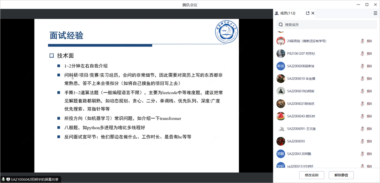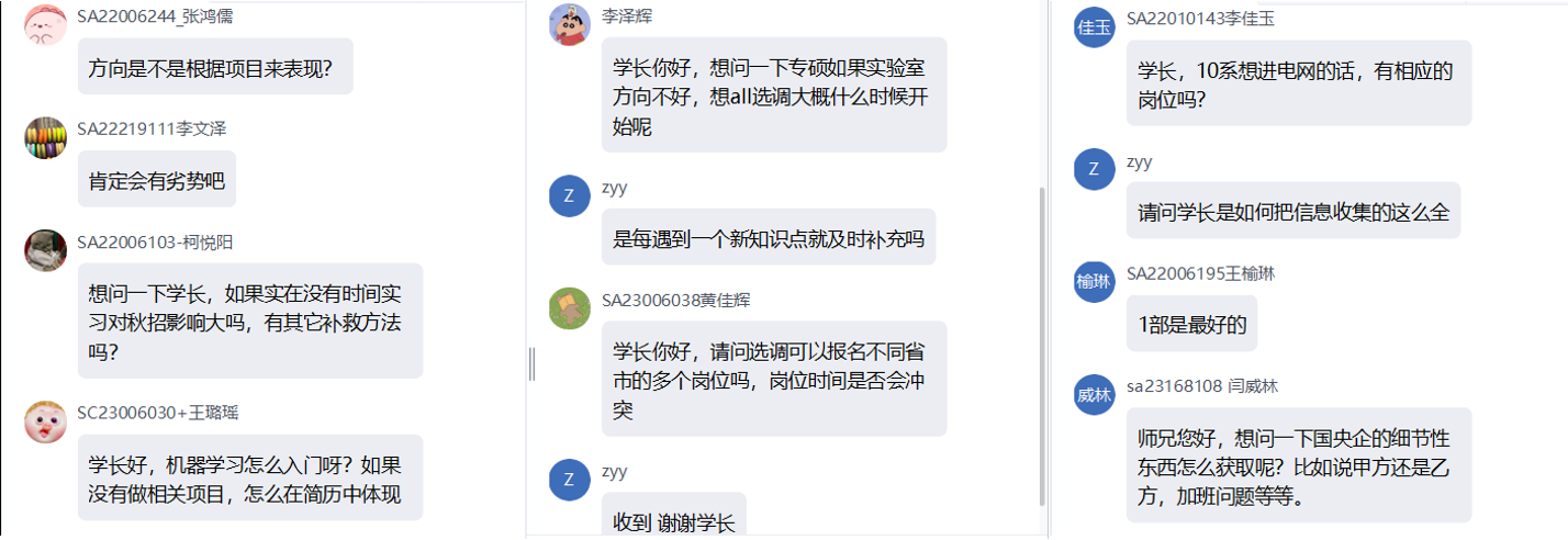 三位学长热情详细的经验分享引发了参会同学们的一致好评和热烈讨论,大家积极踊跃地提出了许多问题,学长们也耐心详尽地做出解答。希望参会的同学们能够以此为契机,向优秀的学长学姐们学习宝贵的求职经验,明确自己的奋斗方向。