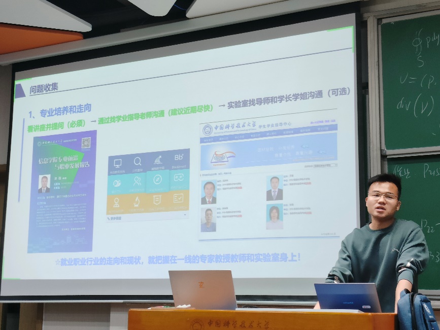 瞿梓俊老师在ppt上呈现了上一个学期班级成绩分布图,让同学们清晰明了地知道自己在班级中的位置,可以更好地确定下一步努力的方向。之后,他提醒同学们积极关注专业培养和走向,通过听讲座、询问学业指导老师和学长学姐的方式做出正确的、适合自身的专业选择。他还就同学们的问题做了详细的解答,从自己的经验出发,给出了不同类型科目的学习建议以及暑假的规划,为同学们的学业提供了强有力的指导。