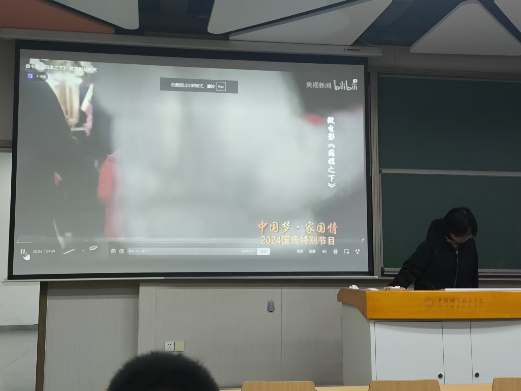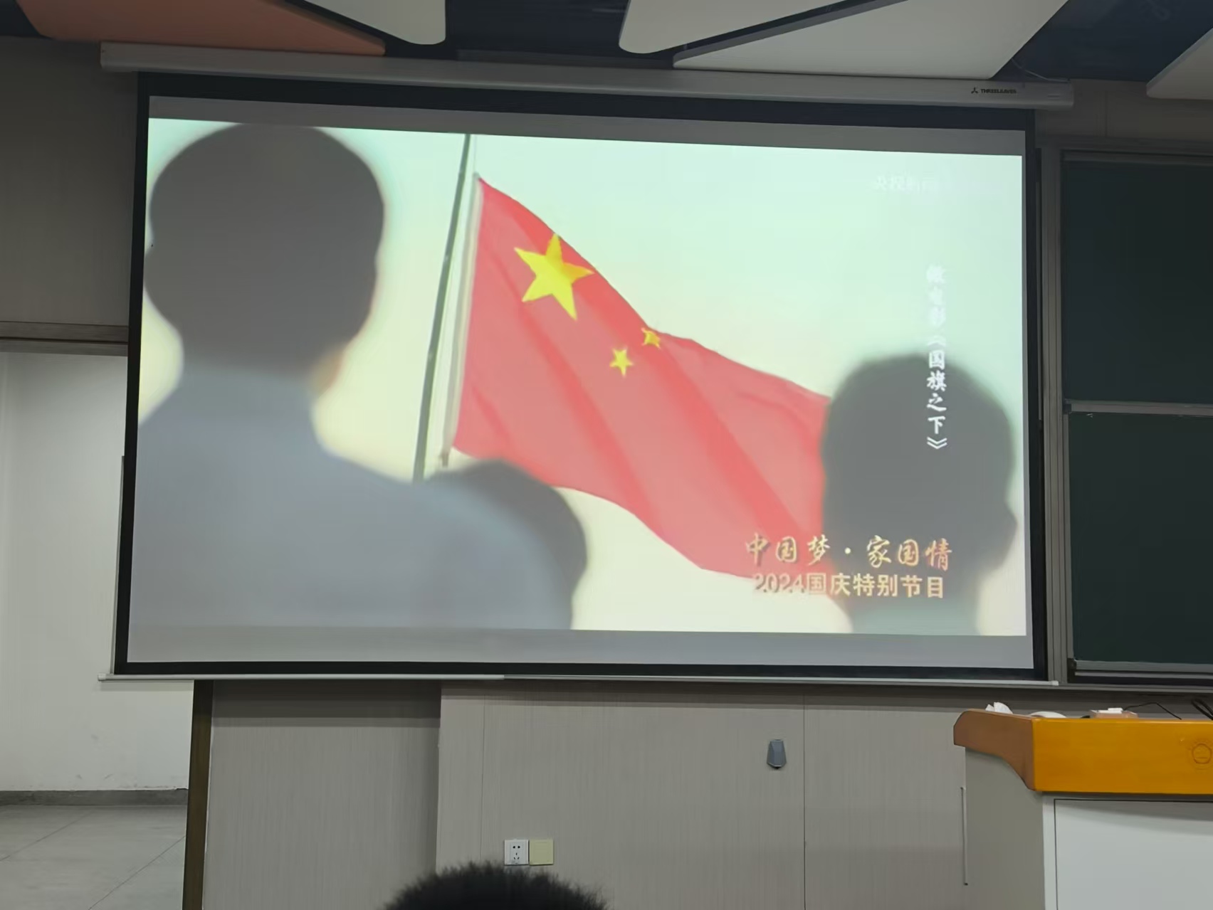 紧接着,主持人为同学们播放了国庆特别微电影《国旗之下》,电影讲述了几名不同身份的人在国旗下的感人故事。同学们被电影情节深深吸引,他们的情感随着故事的起伏而波动。电影中那些真实而质朴的故事,如同一股暖流,激发了同学们强烈的情感共鸣。同学们感受到属于每个中国人的获得感、幸福感和安全感。
