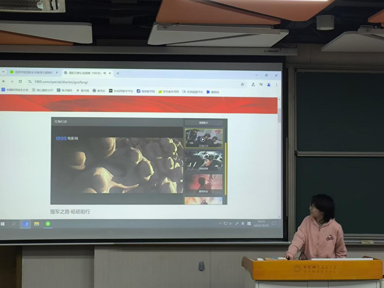 为深入开展国防安全教育月活动,全面贯彻党的二十届三中全会精神,落实总体国家安全观,培养和践行社会主义核心价值观,信院2304班于2024年10月24日晚在3C204开展国防安全主题教育观影活动。本次活动由2304班全体同学到场参与。