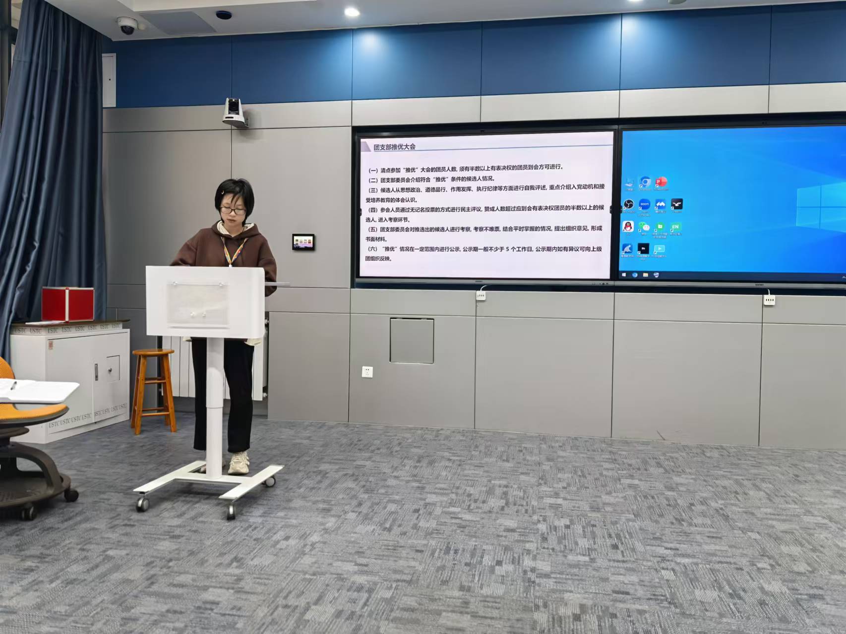 首先,在团支书朱琴的主持下,进行了推优大会。经过团支部委员会的集体讨论,本次共有7名同学被推荐作为入党积极分子。在支部的全体团员的见证下,这7名同学依次上台,介绍自己的入党动机和接受培养教育的体会认识。全体参会团员通过无记名投票的方式进行民主评议。7位同学均获得推荐成为积极分子。按照相关工作要求,团支委在支部范围内对这一结果进行了公示。