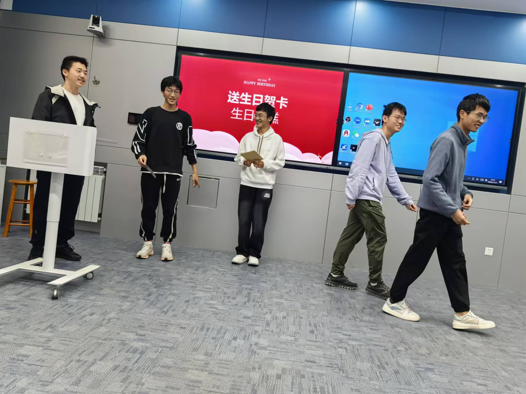 在团课学习之后,班级为两名本月过生日的同学举办了一场简单而又温馨的庆祝活动。室友们向过生日的同学送上了精心准备的贺卡和祝福,全班同学齐唱生日快乐歌,现场洋溢着欢乐和温馨的气氛。