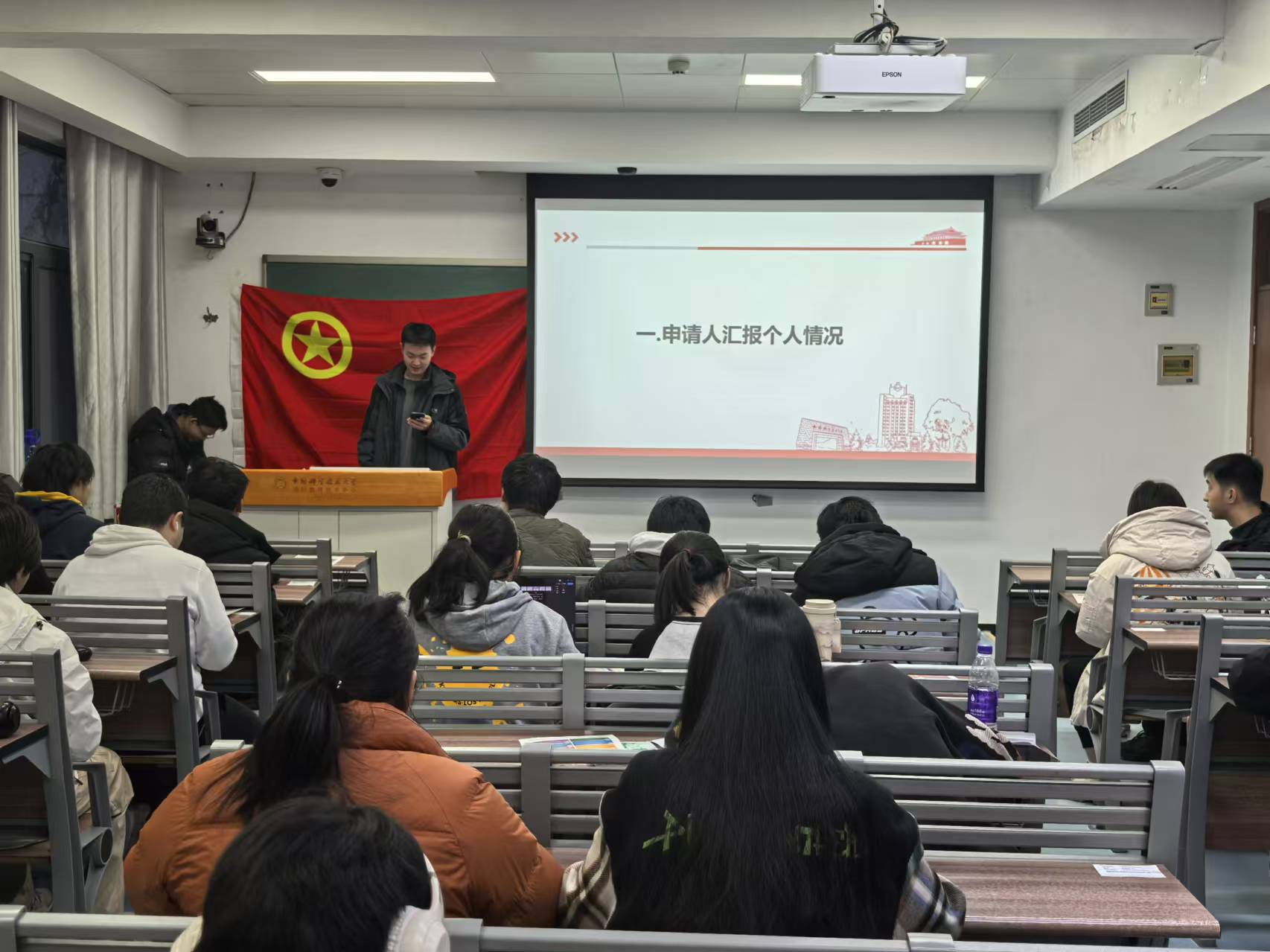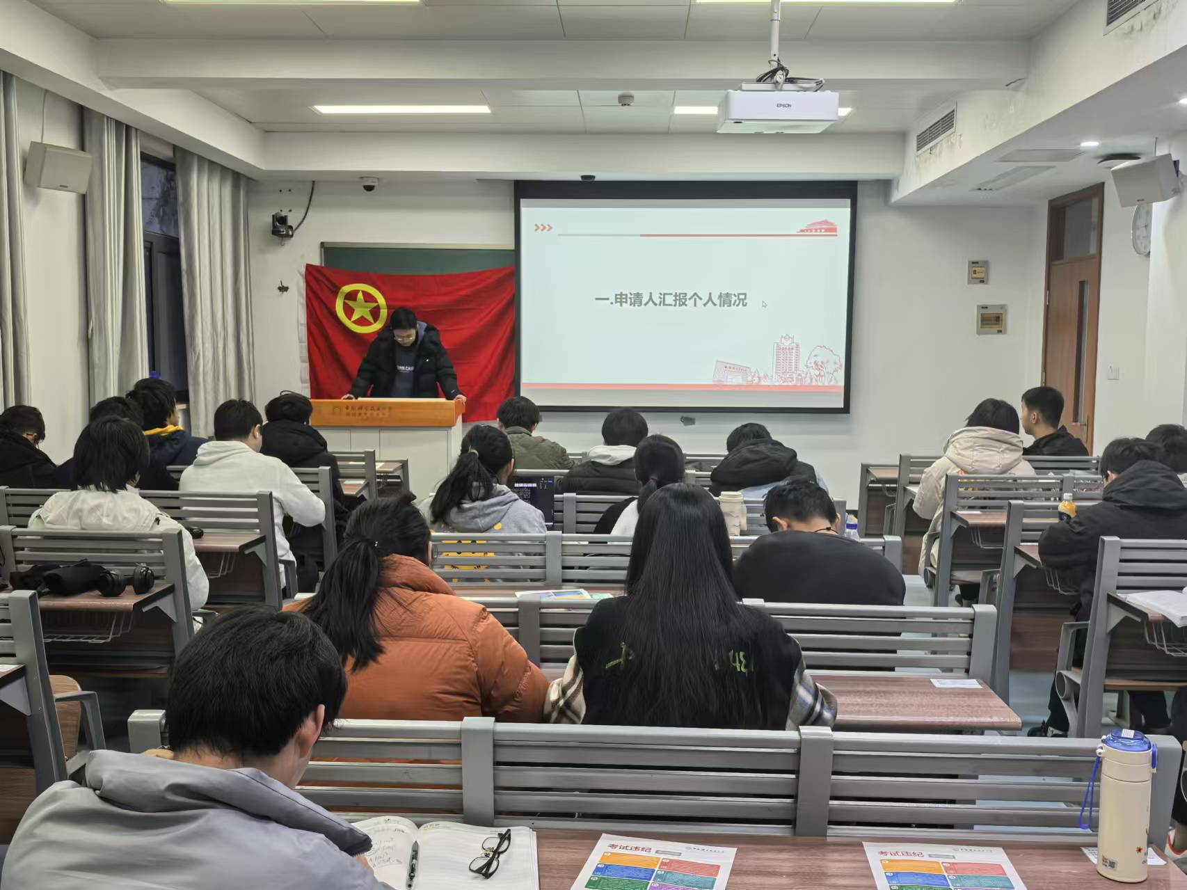 最后,举行了团支部团员大会。本次团员大会的主题是讨论三名同学的入团申请。三位申请人依次上台汇报个人情况,他们用真诚的话语展现了自己对共青团组织的热烈向往和向团组织靠拢的坚定决心。随后,入团介绍人朱琴分别对三位同学的现实表现进行了客观评价。全体团员针对三位同学的入团申请进行讨论后,大家投出了自己的宝贵一票。团支部副书记沙恩泽同学宣布,共收到选票35张,三位同学所获赞成票数均为35票。团支委决定批准三位同学的入团申请。