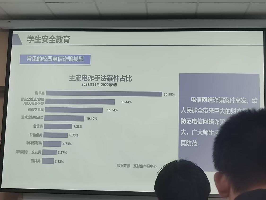 班会伊始,李梓达同学以近期社会上频发的电信诈骗案件为切入点,详细讲解了电信诈骗的常见手段、特点以及防范措施。他通过生动的案例分析和实用的防骗技巧,让同学们深刻认识到电信诈骗的危害性,并学会了如何在日常生活中有效识别和防范此类诈骗行为。
