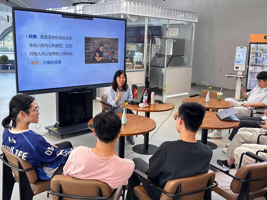 随后,郑敏老师结合心理学研究成果指出:“高质量、稳定的人际关系,是幸福感的核心支柱。”她以家庭、友谊和职场等多个生活场景为例,深入阐释了情感联结的深度如何滋养个体的内心世界,并强调:“真正的幸福,往往蕴藏在与他人之间温暖而真诚的互动之中。”