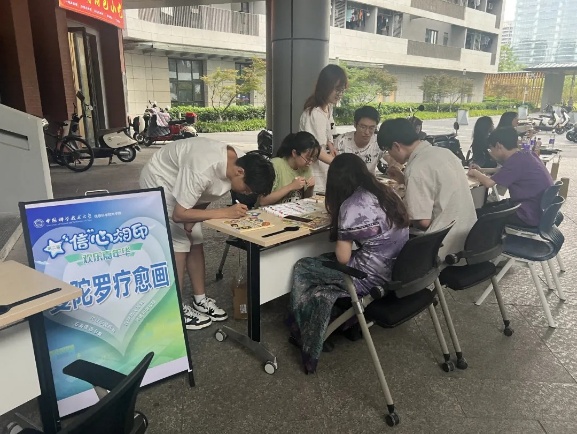现场气氛热烈,解绳大挑战让大家体会到合作的重要,曼陀罗绘画则带来内心的平静和治愈。参加活动的同学感慨到:“生活中的压力就像乱绳,只有沟通和配合,才可能慢慢解开。”心理嘉年华不仅带来了欢乐,更成为同学们自我关照和互助成长的温馨空间。
