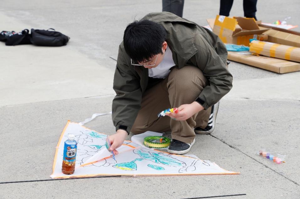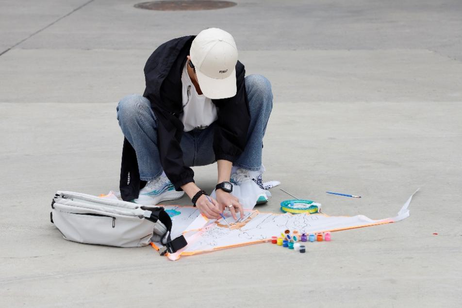 在完成图案绘制后,同学们纷纷开始放飞自己的风筝。虽然现场的风速并不稳定,但在多次尝试后,大多数同学都掌握了要领,成功地让自己制作的风筝与现场其它风筝一同翱翔在空中,现场气氛欢乐愉快。