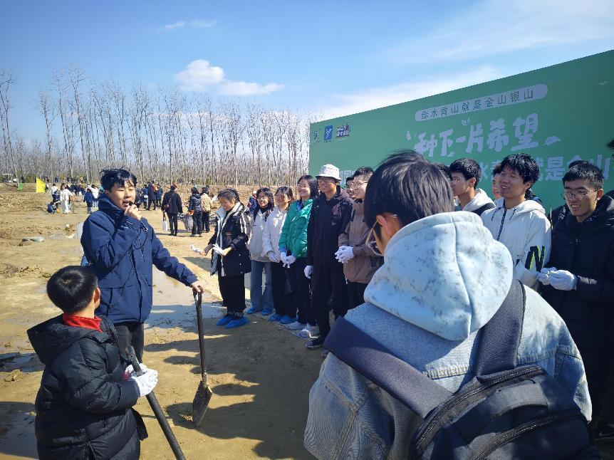 活动在合肥国家滨湖森林公园举行,在前往植树场地的路上,景区的工作人员为大家介绍了景区内的基本情况以及不同树种所具有的各种属性。到达活动场地后,现场的工作人员为同学们讲解了“植树节”的由来及发展,并向大家介绍了中国五大淡水湖,最后现场给同学们讲解如何植树。