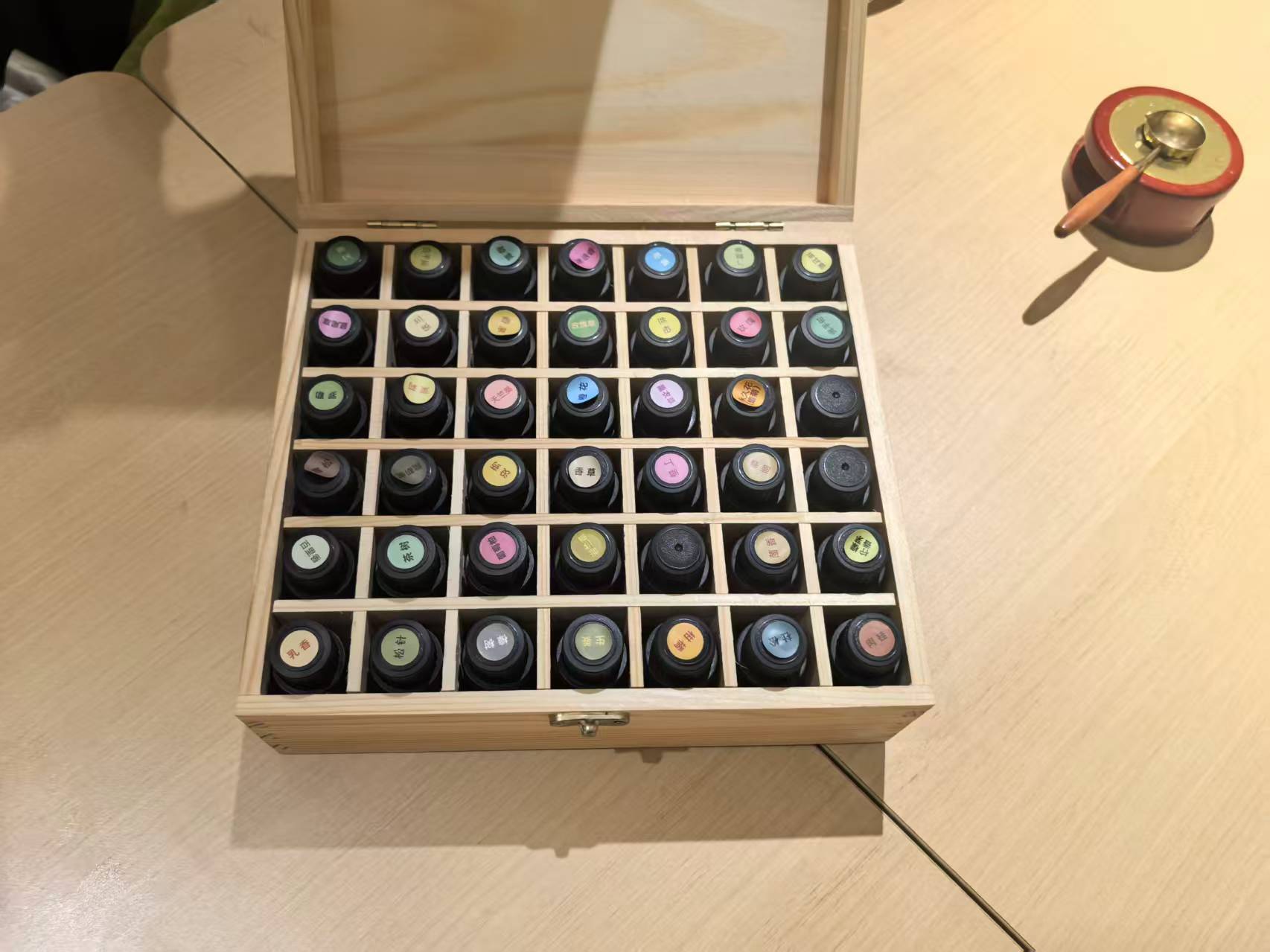 随后,同学们纷纷动手尝试,开启了属于自己的香膏创作之旅。大家仔细挑选精油,在柑橘的清新、玫瑰的馥郁、檀香的沉稳中寻找灵感,互相交流调香心得。有的同学以“柠檬+薰衣草+檀香”打造层次分明的果木香调,有的则别出心裁地尝试了生姜与黑胡椒的独特组合。活动现场香气缭绕,欢声笑语不断,充满了创意与活力。