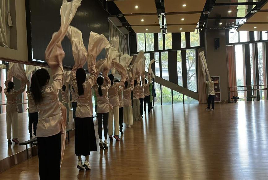 本次舞蹈教学活动吸引了高新校区众多同学踊跃参与,现场氛围热烈,学习热情持续高涨。课程内容涵盖了古典舞与民族民间舞的基本功训练、舞蹈组合学习,并包含一段40秒的成品舞片段教学。在专业顾问的悉心指导下,学员们从最初体验身韵、调整体态,到逐步掌握节奏、完成舞蹈片段,实现了从基础到表达的显著进步。学习过程中,大家彼此鼓励、共同成长,不仅在舞动中提升了节奏感与身体协调性,也在集体排练中深切体会到团队协作的魅力与力量。